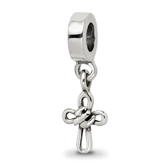 Cross dangle bead is made of antiqued, solid sterling silver. Reflections bead fits all major modular bracelet brands. Import.