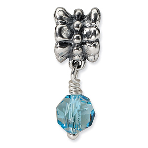 This blue Swarovski crystal dangle bead is made of antiqued, solid sterling silver. Reflections bead fits all major modular bracelet brands. Import.