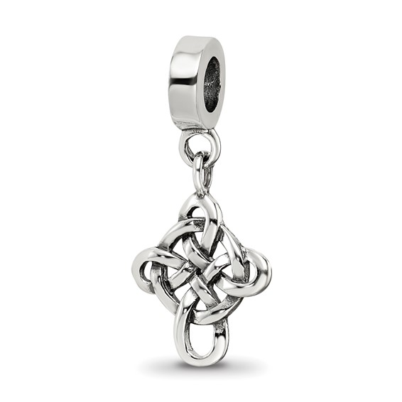 Celtic weave cross dangle bead is made of sterling silver. Reflections bead fits all major modular bracelet brands. Import.