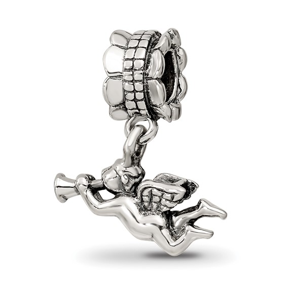 Angel with bugle dangle bead is made of sterling silver. Reflections bead fits all major modular bracelet brands. Import.