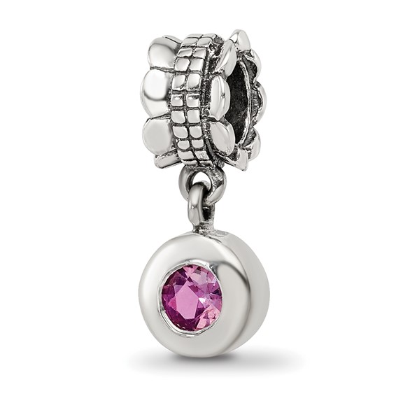 Round dangle bead features a pink cubic zirconia accent. Made of antiqued, solid sterling silver. Imported.