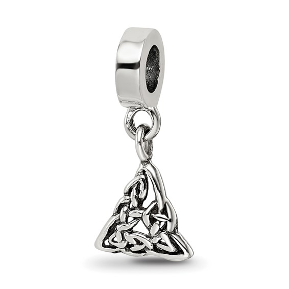 This Celtic trinity dangle bead is made of sterling silver. This Reflection bead fits all major modular bracelet brands. Import.