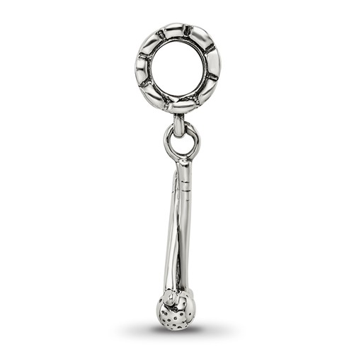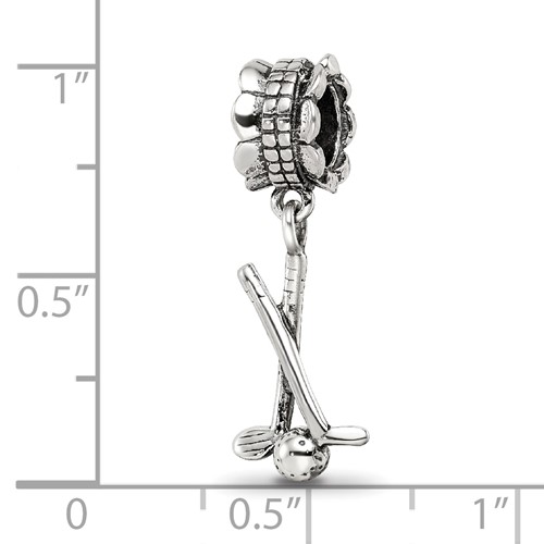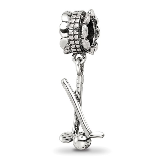 Golf clubs and ball dangle bead is made of antiqued, solid sterling silver. This Reflections bead fits all major modular bracelet brands. Import.