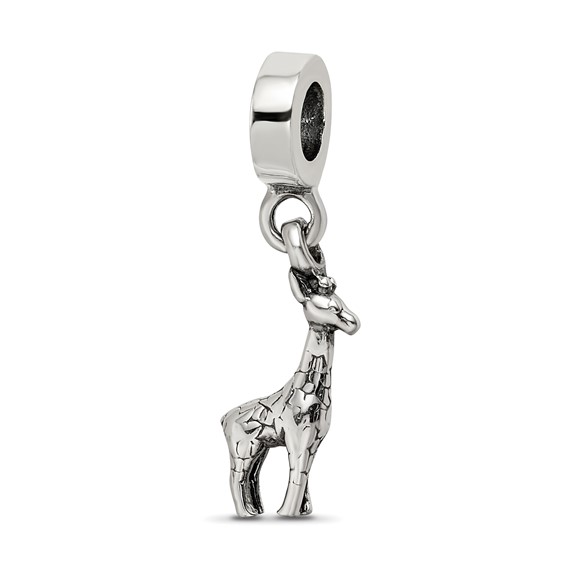Giraffe dangle bead is made of antiqued, solid sterling silver. This bead fits all major modular bracelet brands. Import.
