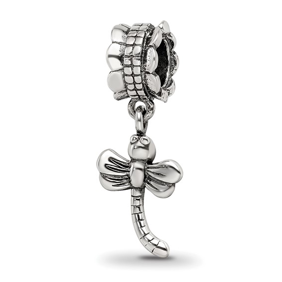 Lil dragonfly dangle bead is made of antiqued, solid sterling silver. This bead fits all major modular bracelet brands. Import.