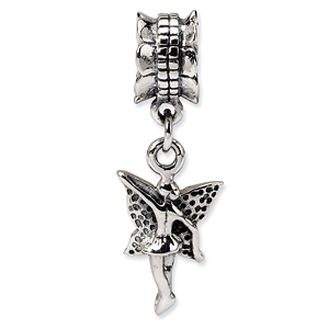 Fairy dangle bead is made of antiqued, solid sterling silver. Imported.