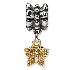 Butterfly dangle bead is made of 14kt yellow gold and solid sterling silver. This bead fits all major modular bracelet brands. Import.