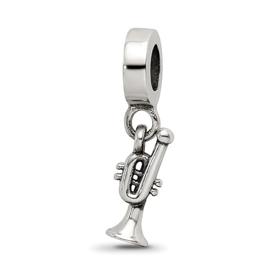 Trumpet dangle bead is made of antiqued, solid sterling silver. Trumpet size: 10.9mm x 6.3mm. This Reflection bead fits all major modular bracelet brands. Import.