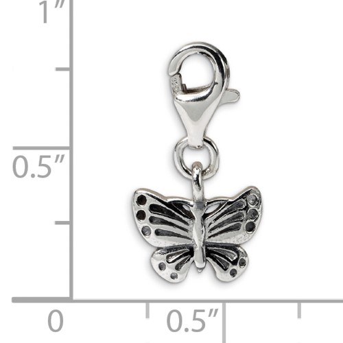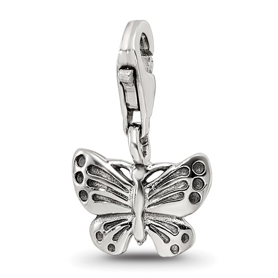 Butterfly click-on charm for bead is made of antiqued, solid sterling silver. This bead fits all major modular bracelet brands. Import.