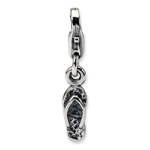 Flip flop click-on charm for bead is made of antiqued, solid sterling silver. Imported.