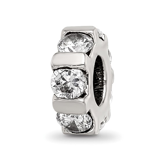 Cubic zirconia accents go all the way around this sterling silver bead. Import.