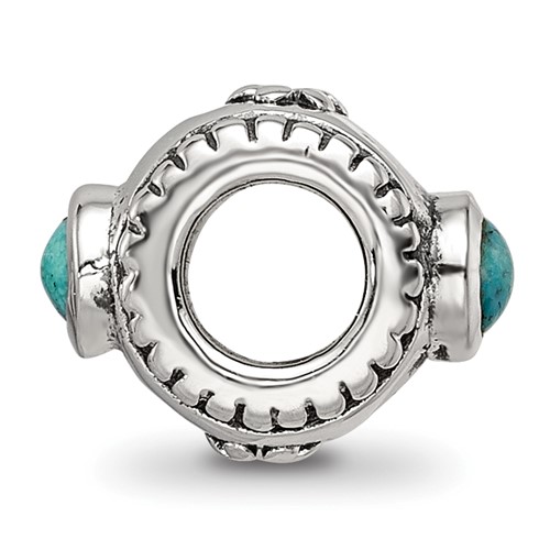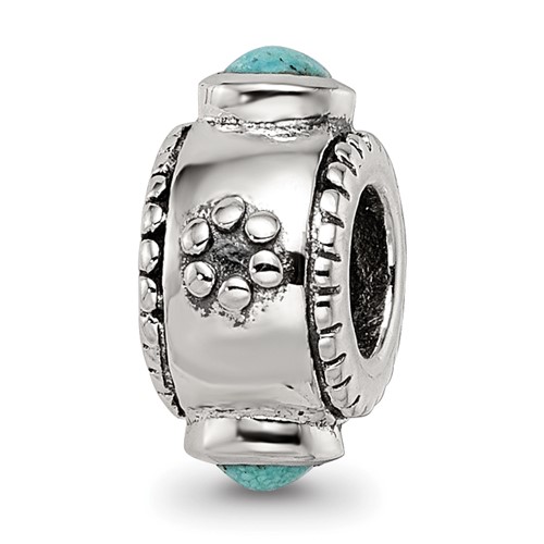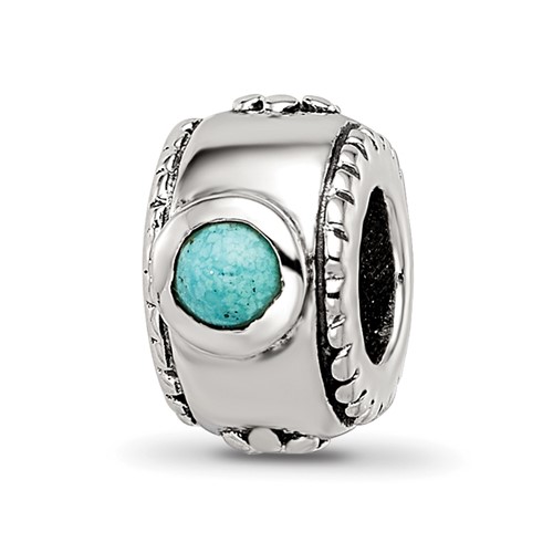 Turquoise and cubic zirconia round bead is made of antiqued, solid sterling silver. Bead opening Diameter 4 mm. Imported.