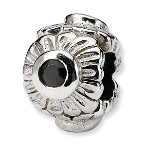 Black CZ flower bead is made of antiqued, solid sterling silver. Available while supplies last. This bead fits all major modular bracelet brands. Imported.