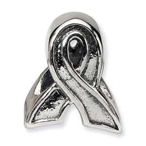 Awareness ribbon bead is made of antiqued, solid sterling silver. Imported.