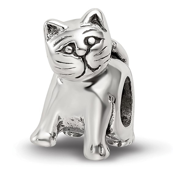 Cat bead is made of antiqued, solid sterling silver. This Reflection bead fits all major modular bracelet brands. Import.