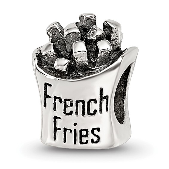 French fries bead is made of antiqued, solid sterling silver. This Reflection bead fits all major modular bracelet brands. Import.