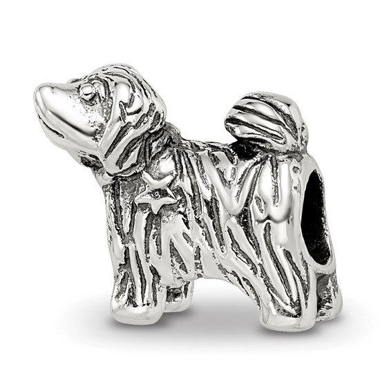 Puppy bead is made of antiqued, solid sterling silver. This Reflections bead fits all major modular bracelet brands. Import.