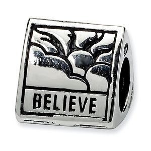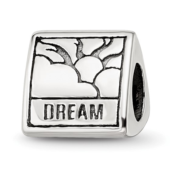 Three sided bead: Dream, Believe, Succeed. Made of antiqued, solid sterling silver. Imported.