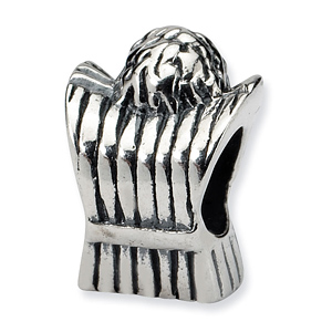 This silver angel praying bead is part of the Reflections bead collection. Item measures 10mm by 8.18mm with a bead opening diameter of 4mm. Made of antiqued, solid sterling silver. Imported.