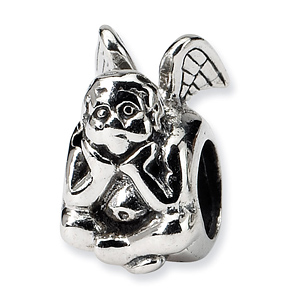 This silver angel thinking bead is part of the Reflections bead collection. Item measures 10.91mm by 6.36mm with a bead opening diameter of 4mm. Made of antiqued, solid sterling silver. Imported.