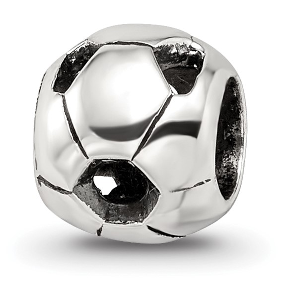 Soccer ball bead is made of antiqued, solid sterling silver. This bead fits all major modular bracelet brands. Imported.
