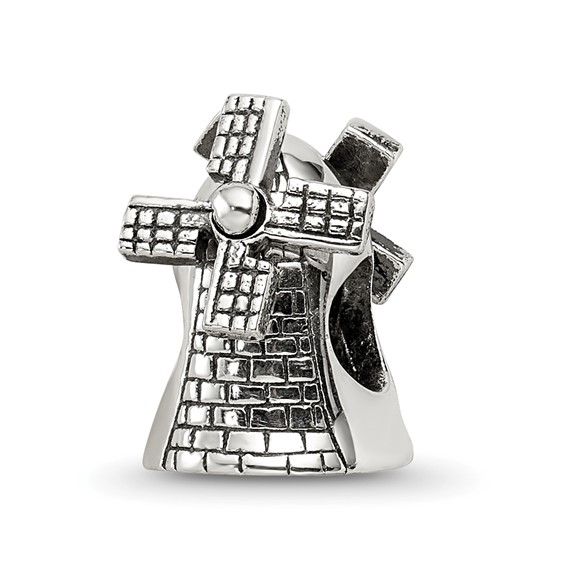 Windmill bead is made of antiqued, solid sterling silver. Dimensions: 12.40mm x 9.15mm. Imported.