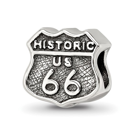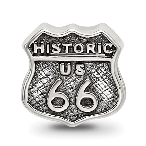 Made of antiqued, solid sterling silver. Historic US Route 66 bead. This bead fits all major modular bracelet brands. Imported.