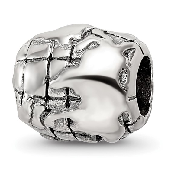 World bead is made of antiqued, solid sterling silver. This Reflections bead fits all major modular bracelet brands. Import.