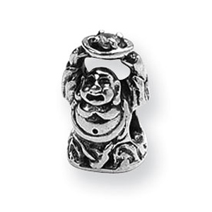 This silver CZ Buddha bead is part of the Reflections bead collection. Measures 13.64mm by 7.27mm. The opening is 4mm in diameter. Made of antiqued, solid sterling silver. Imported.