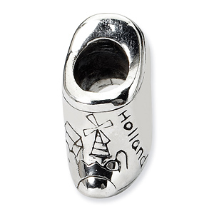 Shoe bead has the word Holland in black antique letters. Made of antiqued, solid sterling silver. Imported.
