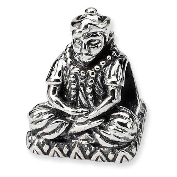 Sitting Buddha bead is made of antiqued, solid sterling silver. Available while supplies last. This bead fits all major modular bracelet brands. Imported.