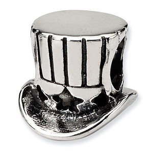 This silver Uncle Sam top hat bead is part of the Reflections bead collection. Measures 8.18mm by 10.00mm. The opening is 4mm in diameter. Made of antiqued, solid sterling silver. Imported.