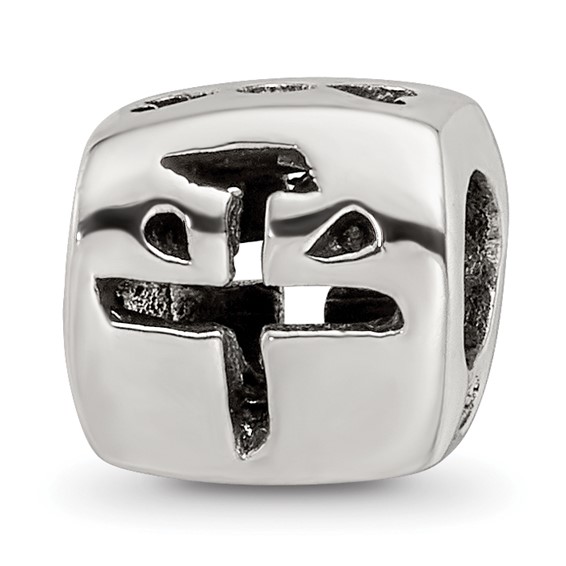 This silver Chinese Peace bead is part of the Reflections bead collection. Measures 8.18mm by 8.18mm. The opening is 4mm in diameter. Made of antiqued, solid sterling silver. Imported.
