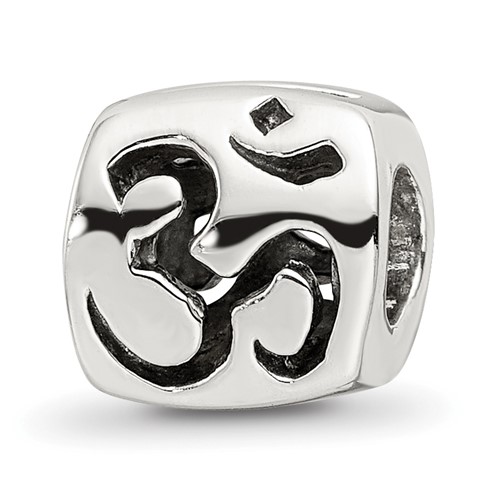 Om symbol bead is made of antiqued, solid sterling silver. Imported.