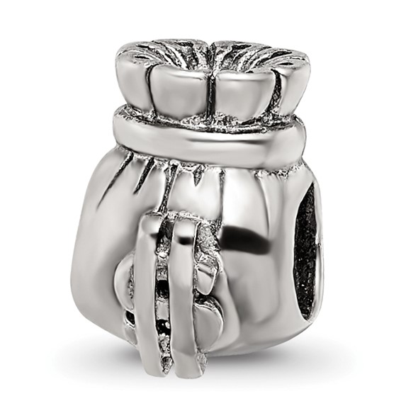 Money bag bead is made of antiqued, solid sterling silver. Item size: 10mm x 7mm. This Reflection bead fits all major modular bracelet brands. Import.