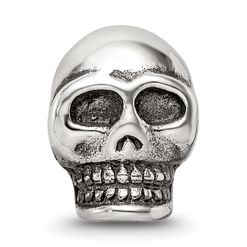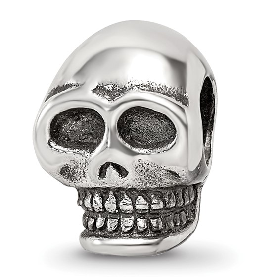 Skull bead is made of antiqued, solid sterling silver. Imported.
