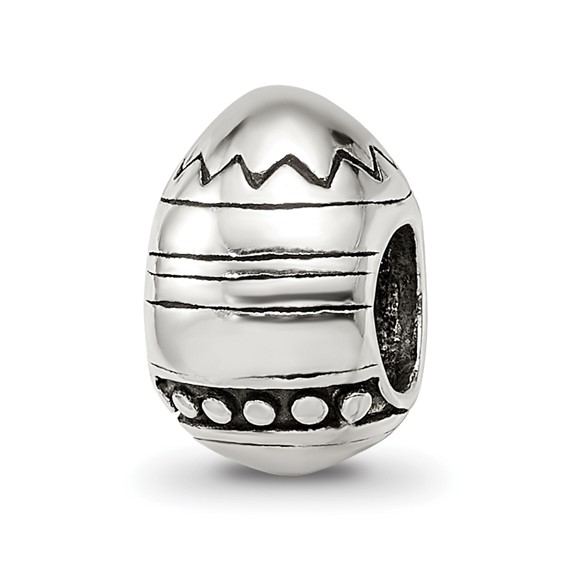 This adorable Easter egg bead is made of antiqued, solid sterling silver. This bead fits all major modular bracelet brands. Imported.