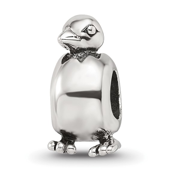 This baby bird is hatching out of an egg. Made of antiqued, solid sterling silver. Imported.