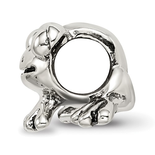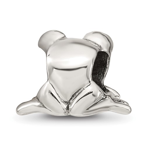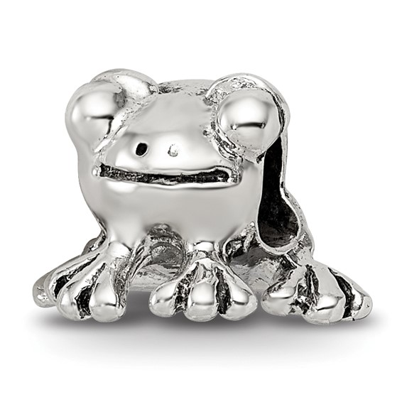 This cute little frog has a big head and little legs. Made of antiqued, solid sterling silver. This Reflections bead fits all major modular bracelet brands. Import. Ships from USA.