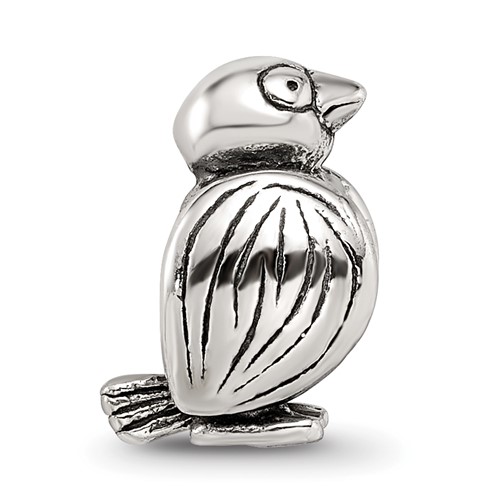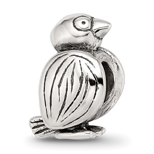 Bird bead is made of antiqued, solid sterling silver. Imported.