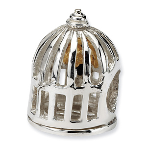 Bird cage bead is made of antiqued, solid sterling silver and 14kt yellow gold. Available while supplies last. This bead fits all major modular bracelet brands. Imported.