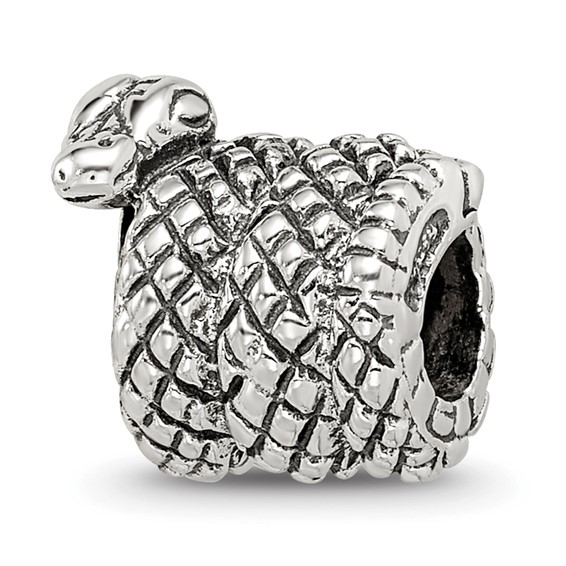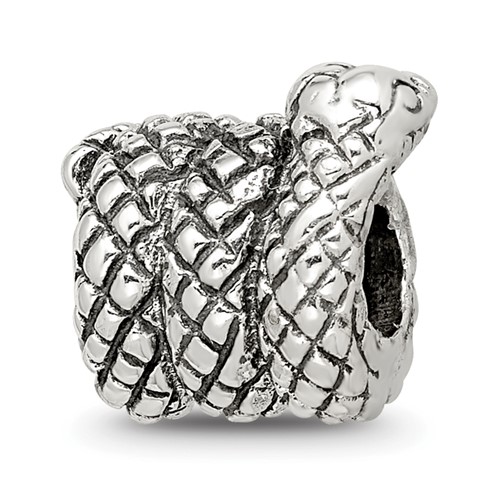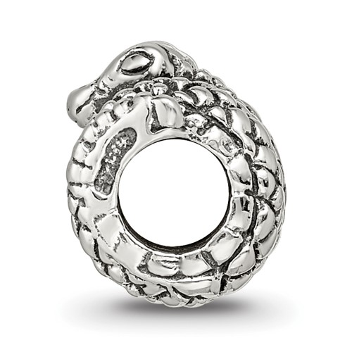 Coiled snake bead is made of antiqued, solid sterling silver. Imported.
