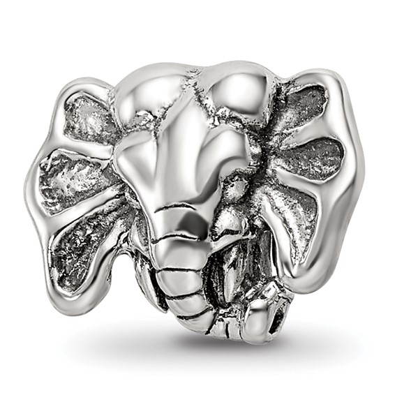 This elephant head bead is part of the Reflections bead collection. Made of antiqued, solid sterling silver. Imported.