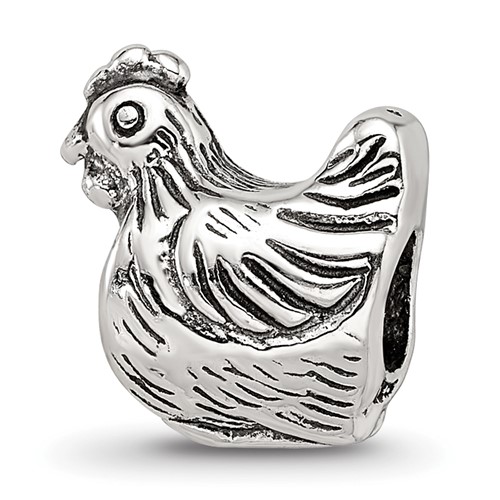 Chicken bead is made of antiqued, solid sterling silver. This Reflection bead fits all major modular bracelet brands. Import.