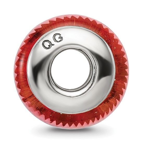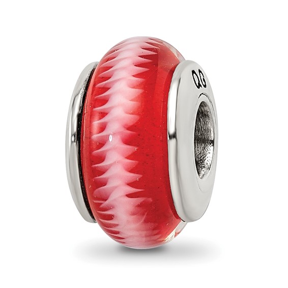 This bead is hand blown out of red glass with a twisted white pattern. Made of antiqued, solid sterling silver. Color range varies. Imported.