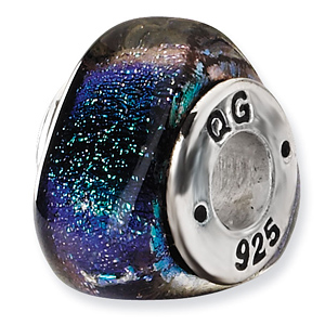 Oblong purple blue with green dichroic glass is glass treated with various metal oxides to make it appear to have many colors. This bead is made of antiqued, solid sterling silver. Color range varies. Imported.