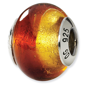This amber orange bead is made in Italy of Murano glass and antiqued, solid sterling silver. Color range varies.