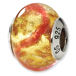 This golden galaxy star bead is made in Italy of Murano glass and antiqued, solid sterling silver. Color range varies.