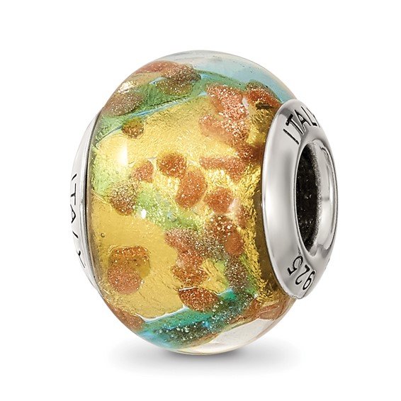 This golden milky way bead is made in Italy of Murano glass and antiqued, solid sterling silver. Color range varies.