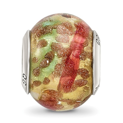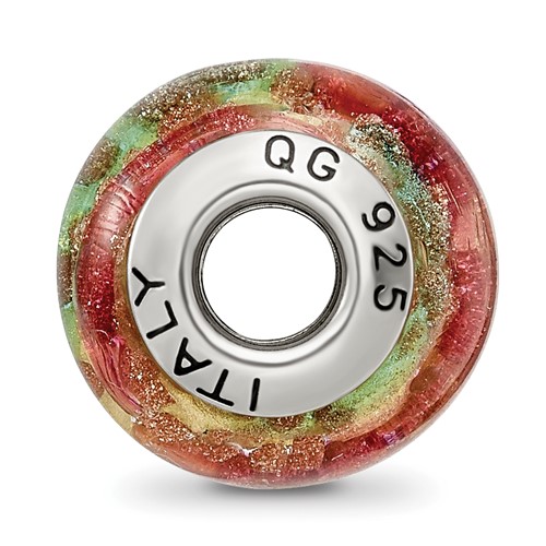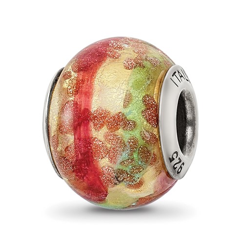 Multicolor bead is made in Italy of Murano glass and antiqued, solid sterling silver. Color range varies.